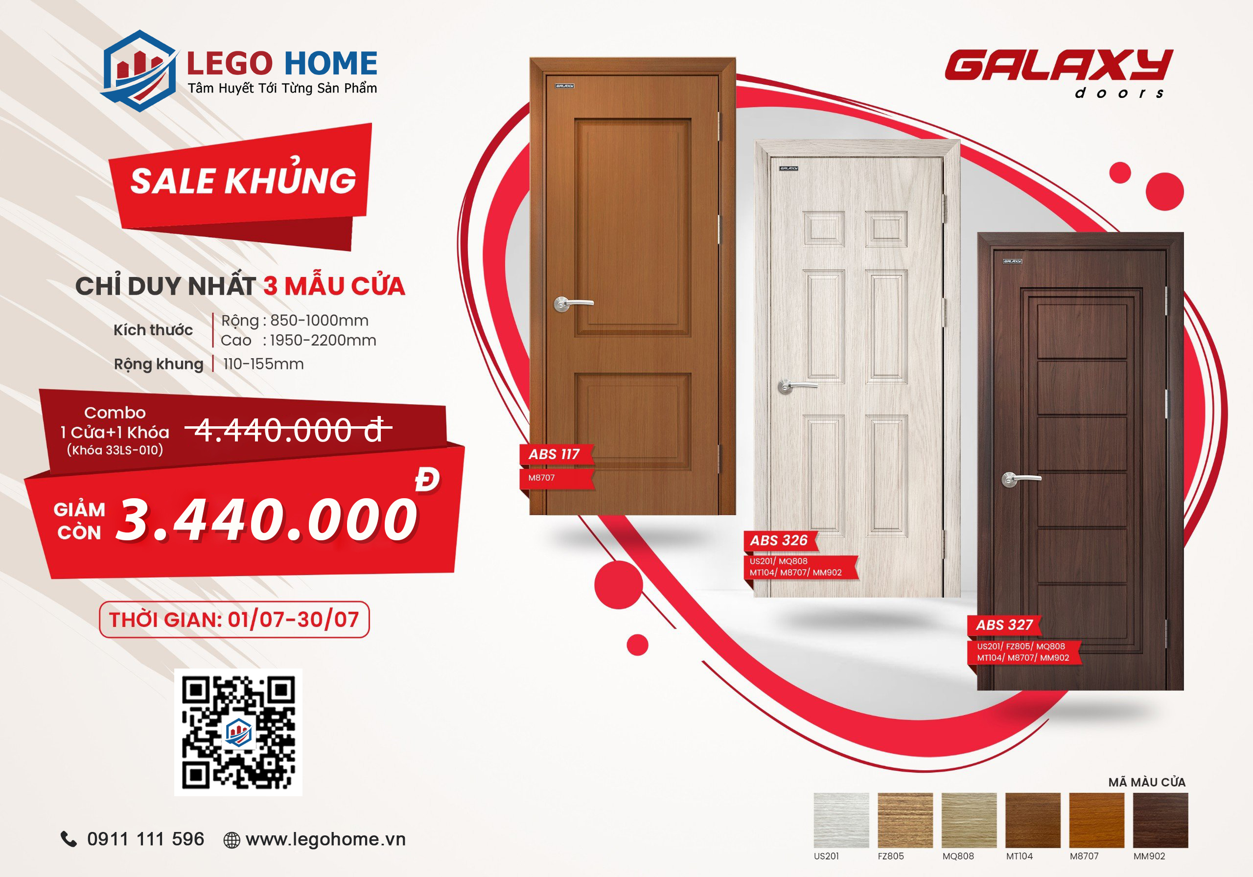 Khuyến mãi cực KHỦNG, giá “HOT” từ 3.440.000 vnđ với Combo “1 BỘ CỬA + 1 BỘ KHÓA” chỉ áp dụng cho 3 mẫu cửa ABS 117, ABS 326, ABS 327 đang Hot nhất thị trường hiện nay với những ưu điểm nổi bật, lựa chọn hàng đầu cho các chủ công trình và nhà phố.